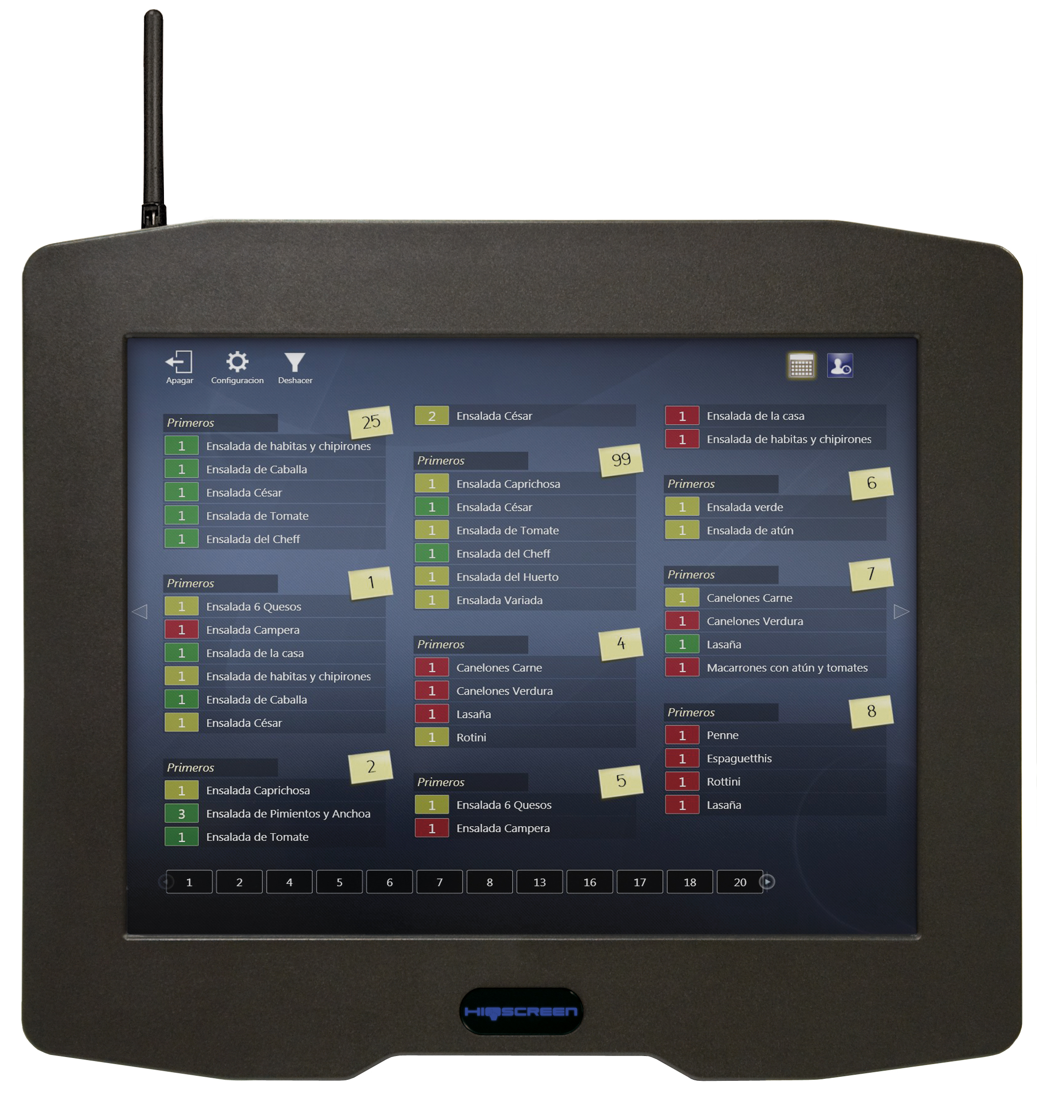 Köksskärmen kan ersätta din köksskrivare och du blir ännu mer effektiv. Inga bongar försvinner. Du tar emot ordern direkt på skärmen och kan börja förbereda ordern direkt. Skärmen visar tydligt vilken status dina rätter har och du ändrar statusen själv genom att flytta rätten på skärmen.